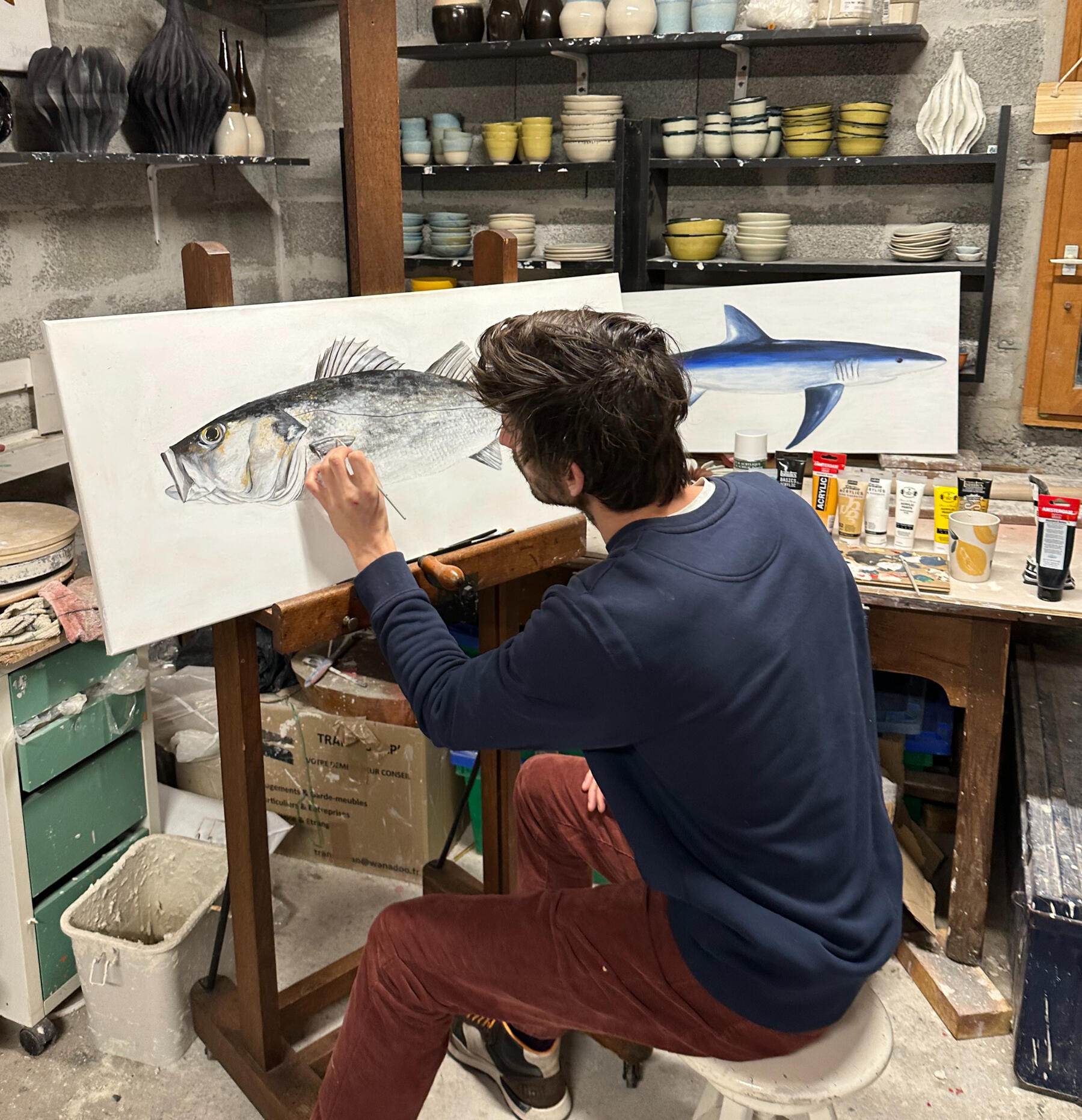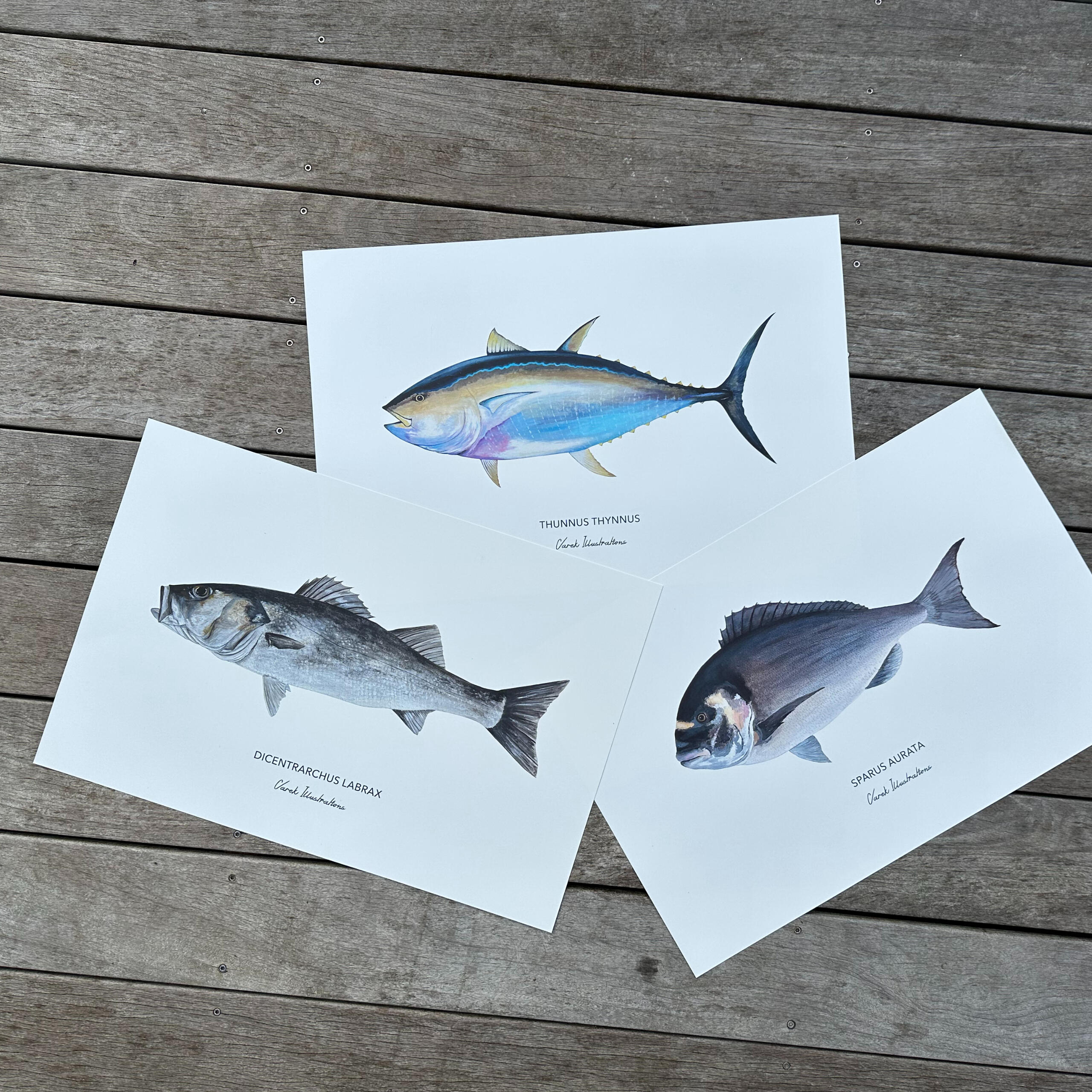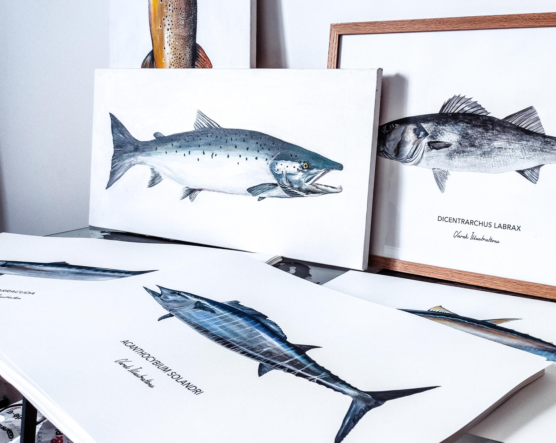 La peinture est une deuxième passion familiale. Nous peignons à l'acrylique, les poissons et crustacés croisés lors de nos parties de pêche. Ces toiles sont ensuite reproduites pour compléter une gamme de produits de décoration destinée à l'affichage mural mais aussi à l'art de la table. Illustrations, set de tables, cartes de vœux, nous déclinons nos peintures pour tous les amoureux du monde halieutique. Varek Illustrations c'est aussi: